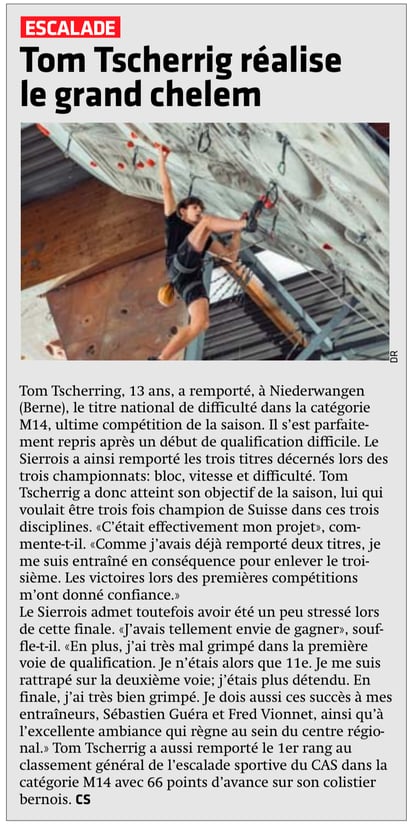 Le CO des Liddes félicite son enseignante Sarah Hitter, du Judo Club Sierre, pour ses nombreux podiums et son parcours de judoka ainsi que son ancienne élève Alixane Berthod pour son titre de championne suisse avec l'équipe féminine du HC Fribourg-Gottéron. Elles ont, les 2, remporté le mérite sportif de la ville de Sierre 2025.